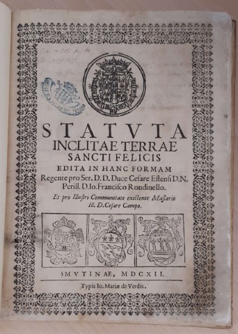 Le leggi della comunità: gli statuti di San Felice sul Panaro Gli Statuti di San Felice sul Panaro vennero emanati dal duca Borso d’Este nel dicembre del 1464 su richiesta d